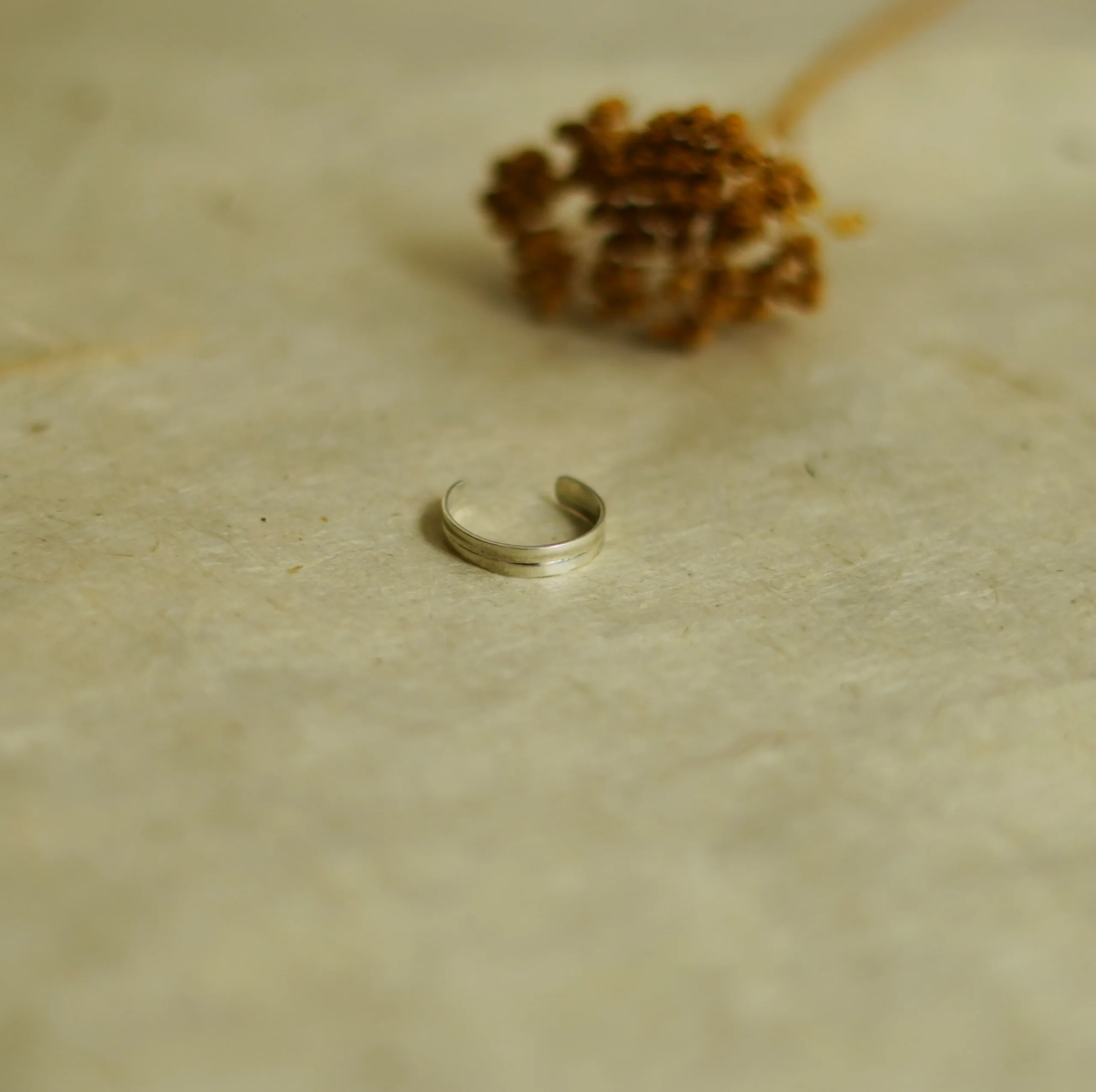 Hecho en plata de ley (925), con un acabado ligeramente texturizado, destaca por su comodidad y versatilidad. Su forma no es completamente redonda, lo que le da un carácter orgánico y natural. Es una pieza sencilla pero con mucha personalidad, perfecta para quienes buscan joyas discretas pero con estilo.